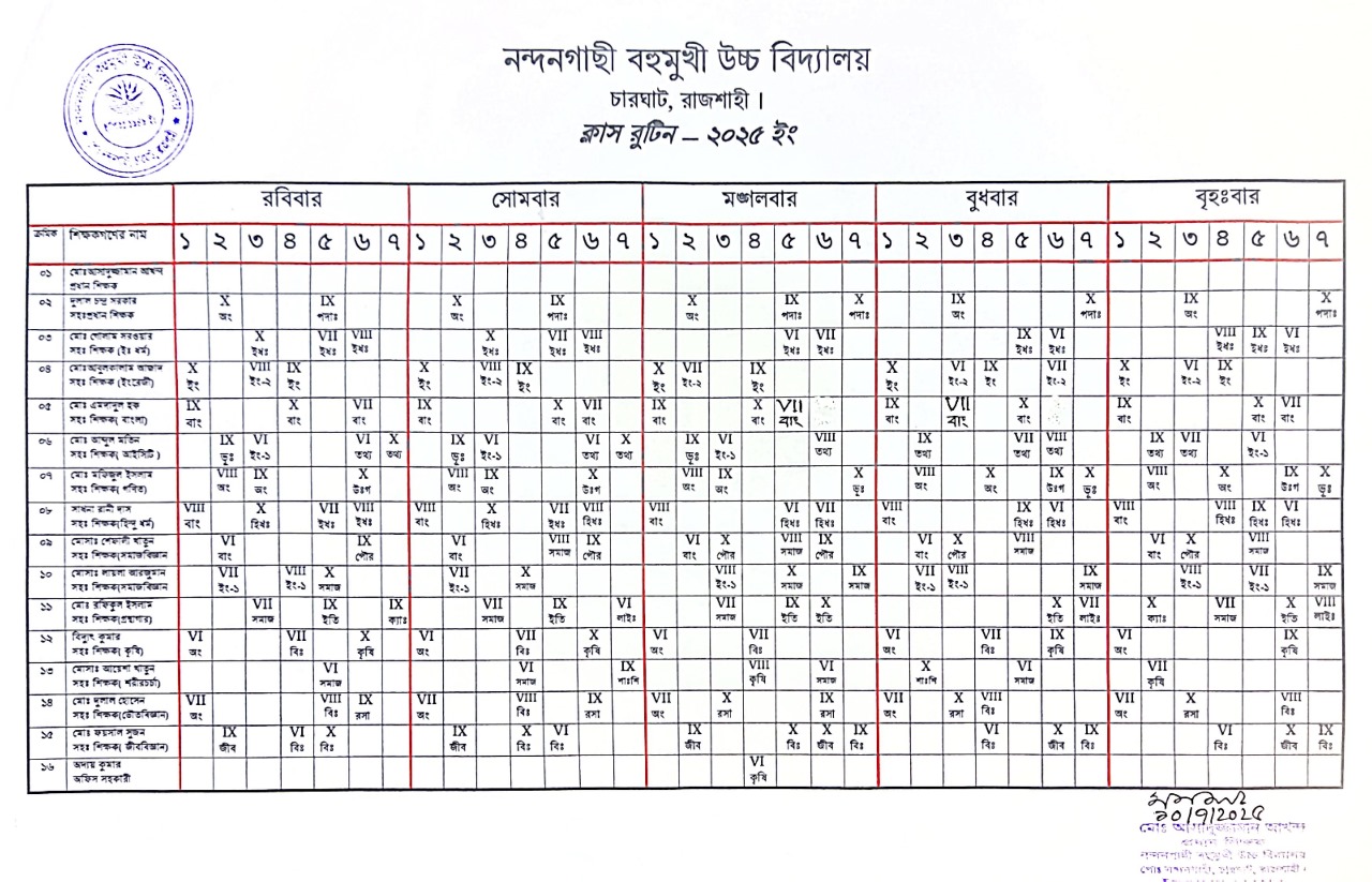 শ্রেনী ভিত্তিক অনুমোদিত শাখার তথ্য